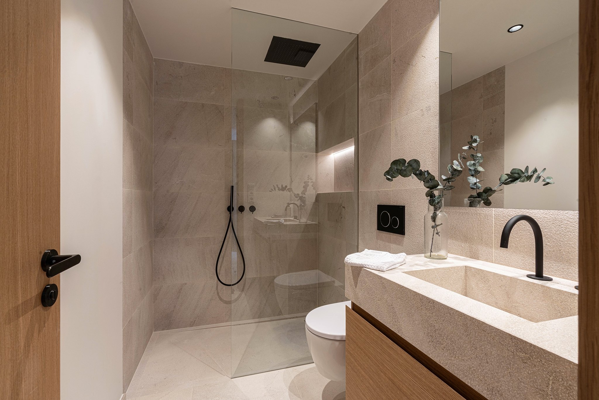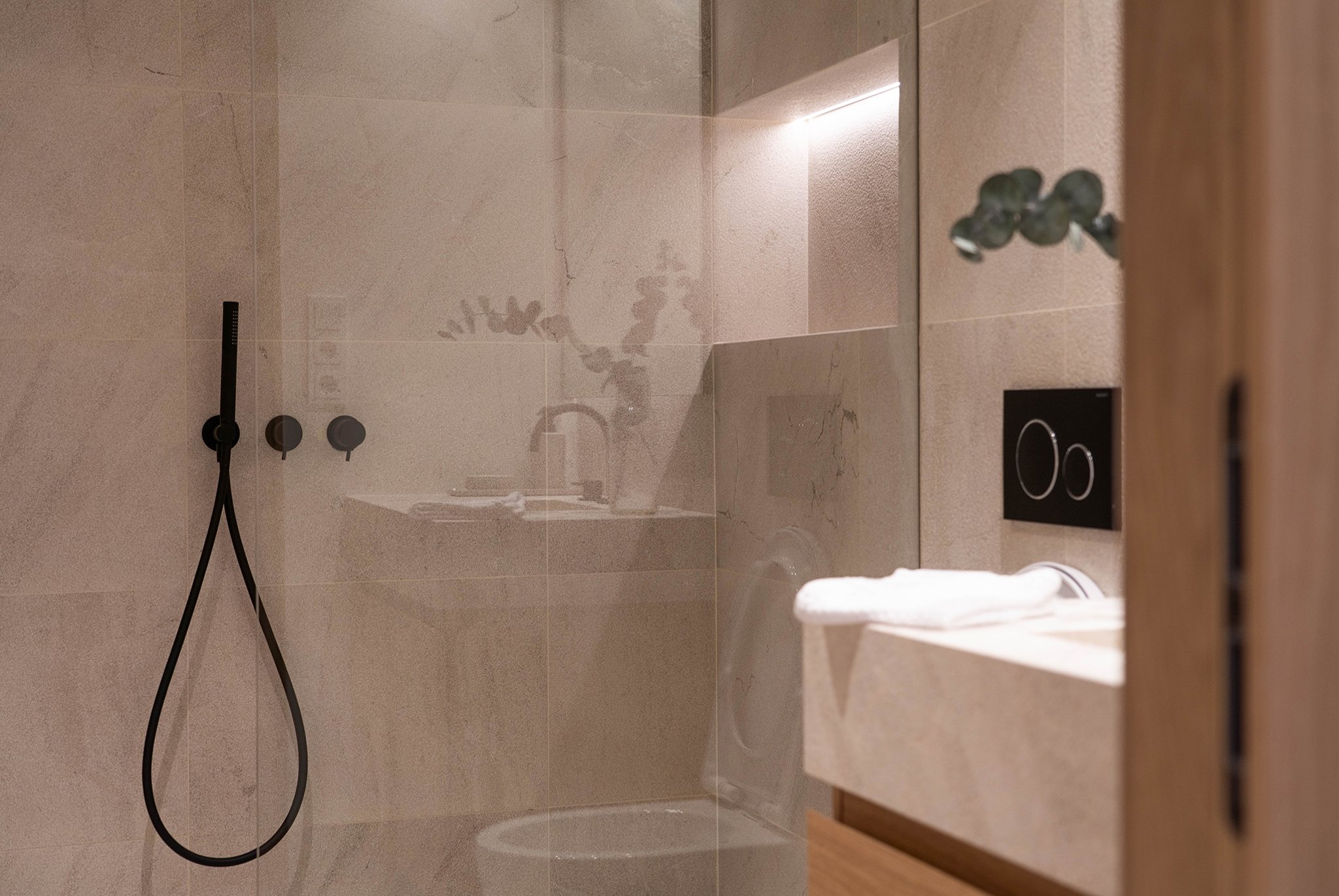 Särskild vikt har lagts vid högkvalitativa materialval i hela lägenheten. Varje detalj har noggrant valts ut för att säkerställa maximal kvalitet. Interiören utstrålar elegans med material som natursten och ekdetaljer. De öppna vardags- och matplatserna integreras sömlöst med köket. Effektiv luftkonditionering, hemautomation och designbelysning bidrar också till en modern och funktionell livsstil. För extra komfort ingår ett praktiskt förråd och två parkeringsplatser.